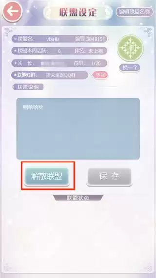 3、在联盟信息页面选择"解散/退出联盟"选项,完成操作