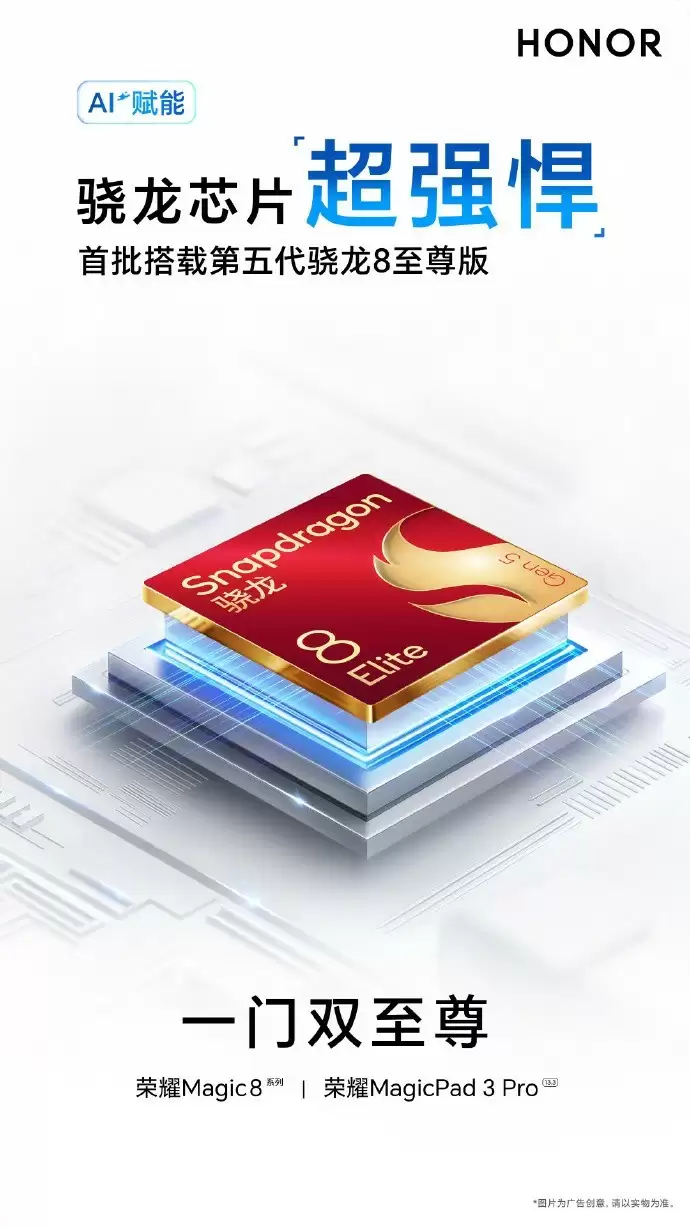 9月25日,荣耀科技正式发布重磅消息:即将登场的Magic8系列旗舰手机与MagicPad 3 Pro平板将率先采用全新第五代骁龙8至尊版处理器,形成"双至尊"旗舰阵容。这一战略动作彰显了荣耀在高端智能终端市场的布局决心。