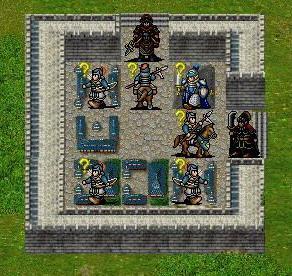 S攻略:若之前有过周瑜送枪的剧情,那么吕蒙会自带军神枪(MP攻击)。一开始先按照提示做掉那三个枪兵,然后干掉烽火台的士兵并占领之(一共12个)。本关过关的方法有很多种,你可以不与中间三座城池的士兵干架(城外士兵除外),用吕蒙与陆逊直接跑去指定地点过关;若与中间三座城池的士兵打过架,吕蒙与陆逊跑到荆州城门外后,则要干掉糜芳或傅士仁随便一个,他们就会投降过关。(PS:若最后只剩下糜芳与傅士仁,会自动触发投降剧情过关,若虞翻还在,则是虞翻劝降傅士仁,并且得到印绶。)若贴近中间三座城池的外面,则会被发现而Game Over,所以要消灭这三座城池的士兵,必须要包围他们使他们混乱,包围要在我军阶段完成,否则会视为被发现而作战失败,而且在包围成功前不能打城里的士兵,否则同样视为被发现。至于如何包围,请看下面的图: