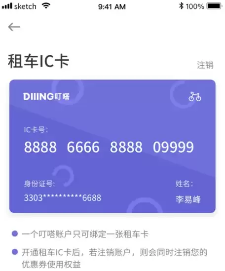 叮嗒出行怎么绑定IC卡,点击【立即开通】,进入开通功能页面,选择【租车IC卡】的开通方式,进入绑定租车IC卡页面,确认实体卡所在城市是否正确,选择该城市,填写姓名,IC卡号以及身份