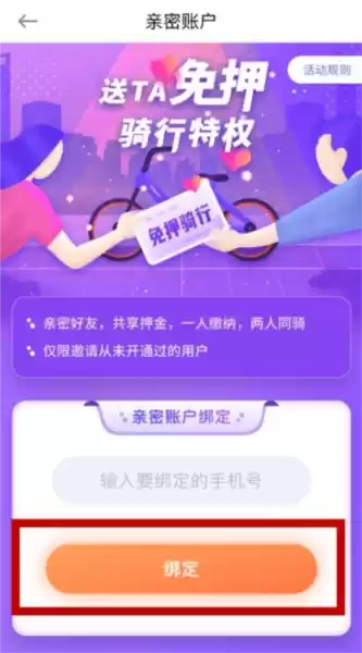 2、进入绑定界面后,准确填写联系人手机号码,点击【确认绑定】并通过验证,即可成功建立亲密关系;