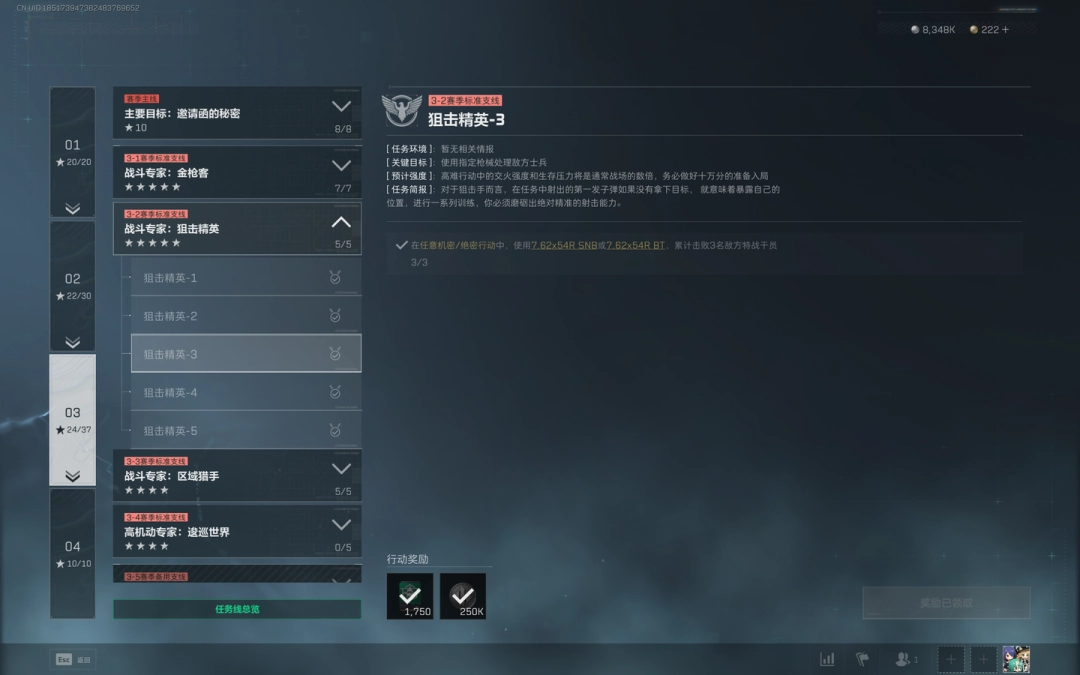 1、任务目标:在任意机密/绝密行动中,使用【7.62x54R SNB】或【7.62x54R BT】,累计击败3名敌方特战干员。
