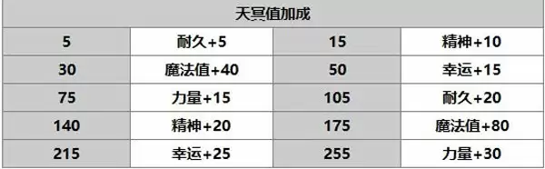 2、天冥值加成效果