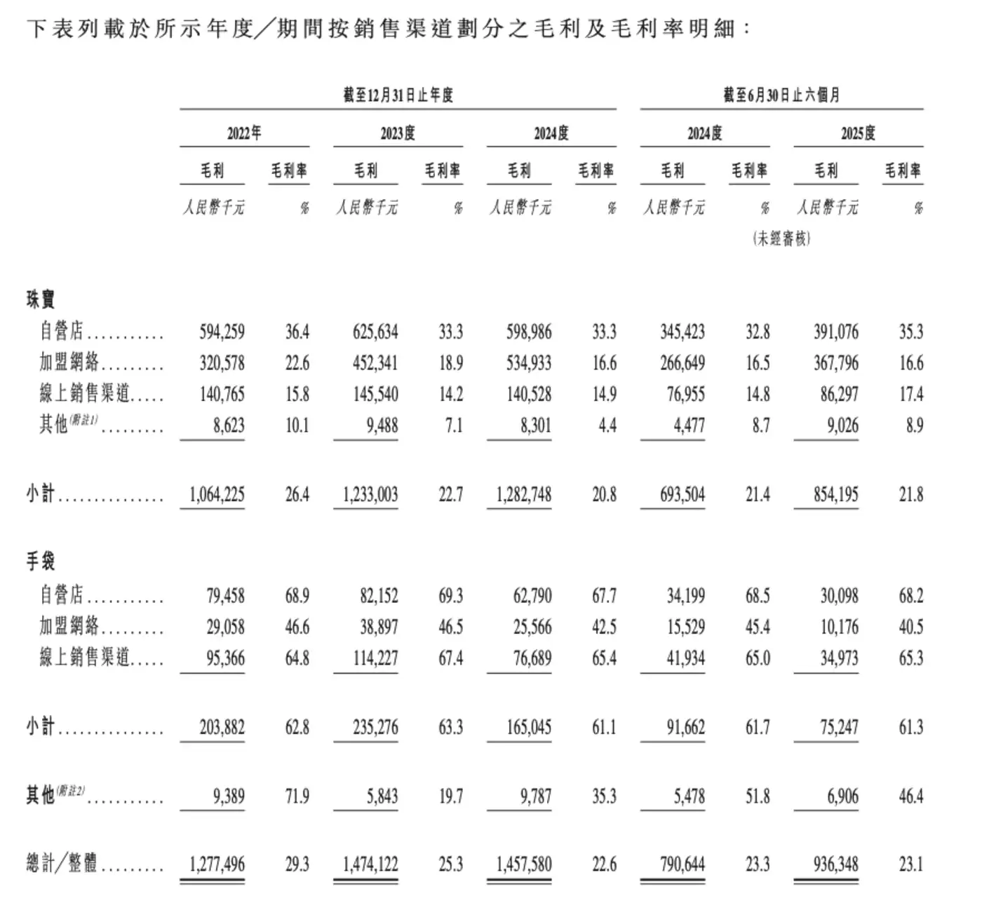 贡献毛利润最多的是时尚珠宝产品类别,其毛利率也从2024年的34.5%下降到2024年的27.6%;经典黄金珠宝毛利率则在2024年提升至8.1%,2025年上半年进一步升至11.8%;菲安妮手袋的毛利率维持在60%以上,但个位数的营收占比不足以影响整体毛利率。