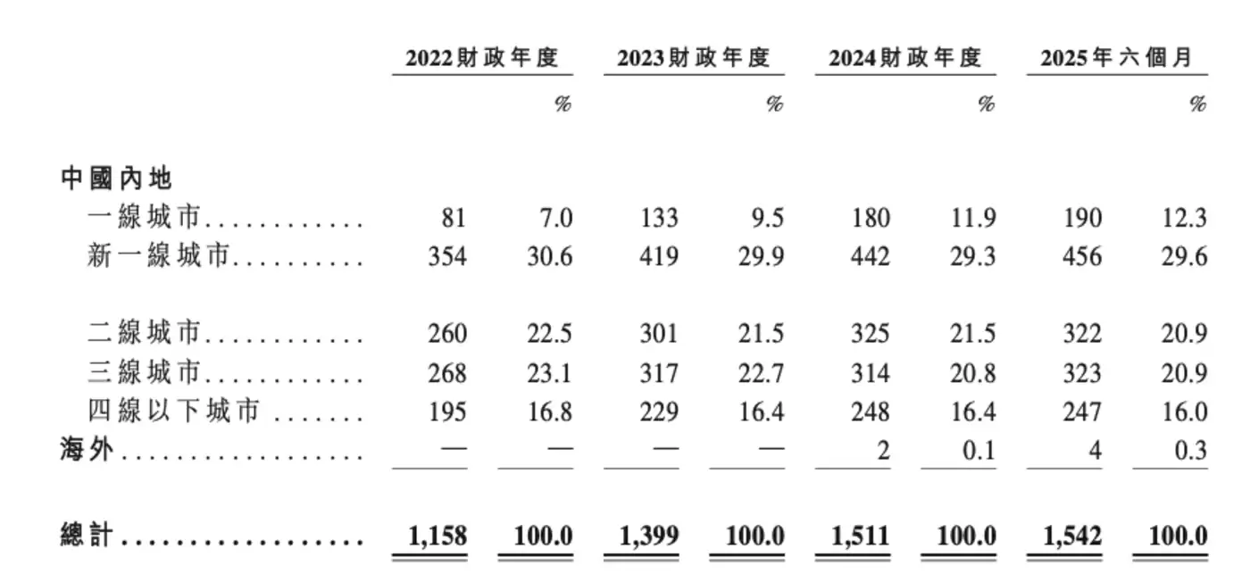 报告期内,潮宏基的珠宝店主要位于“新一线城市”,截至2025年上半年末,其在国内的“新一线城市”拥有456家珠宝店,占比近30%。