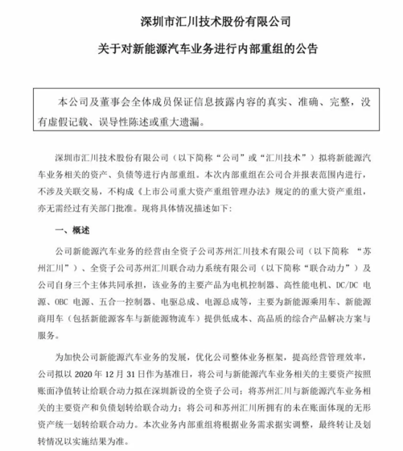 2024年,汇川技术将新能源汽车业务相关资产全部划转至联合动力,实现账目和业务的完全独立,最终决定分拆上市。