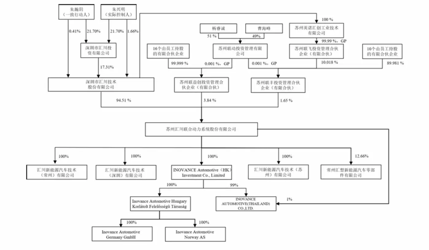 据招股书显示,IPO前,汇川技术拥有联合动力94.51%的股份,而朱兴明父女合计控制汇川技术19.38%股份对应的表决权,既是汇川技术的实控人,亦为联合动力的实控人。