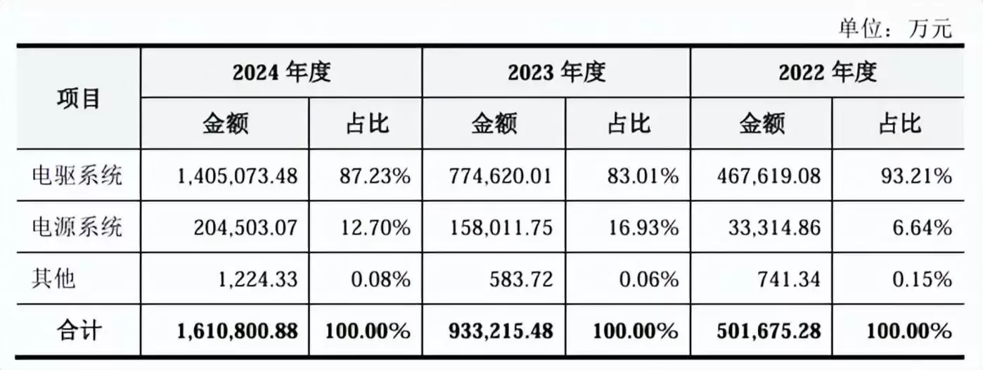从具体业务来看,电驱系统产品成为联合动力的主力营收来源。2024年至2024年,电驱系统业务实现营收占总收入比例为93.21%、83.01%、87.23%。