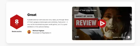 Sucker Punch工作室倾力打造的动作游戏《羊蹄山之魂》今日正式解禁媒体评分。国际知名游戏媒体IGN为本作打出了8分的优秀评价。