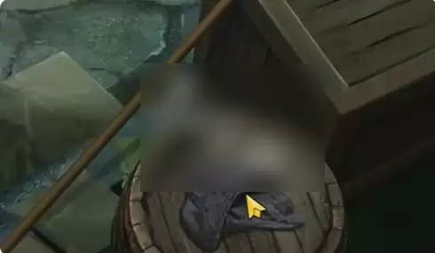2、调查戏院环境时,点击树边的木桶可获得两件道具:晾衣杆与破旧布块。