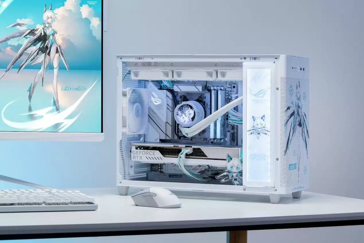 主板是整套主机的基石,十分重要。这里推荐的是吹雪家族新成员——华硕B850小吹雪主板。其以突破性设计重塑电竞美学,加入雪武战姬主题元素,银白装甲搭配白色内存插槽和浅色PCB,白的彻底。再配合上支持神光同步的ROG LOGO,构建次元美学新标杆!该主板单品华硕商城到手价1597元,晒单返50元红包,购买链接:https://www.asus.com.cn/store/goods/detail?productId=42245552401137 ;京东商城到手价1591元,可享6期免息,购买链接:https://item.jd.com/100206282238.html
