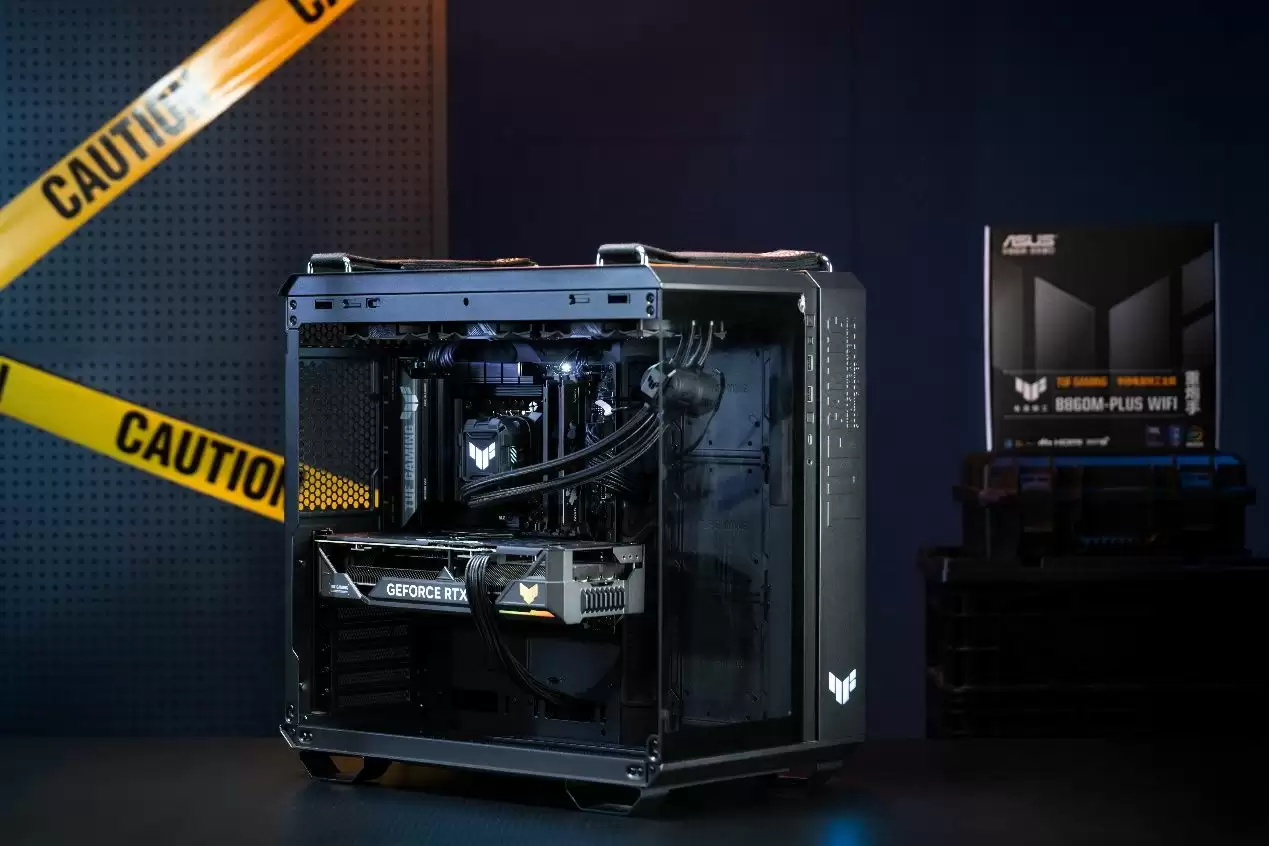 接下来给大家推荐一套冷酷军工风电竞小钢炮。以华硕B860重炮手WIFI主板为核心,搭配Intel酷睿Ultra 7 265F处理器、华硕TUF RTX5070Ti O16G GAMING显卡等高性能硬件,高帧畅玩无压力!