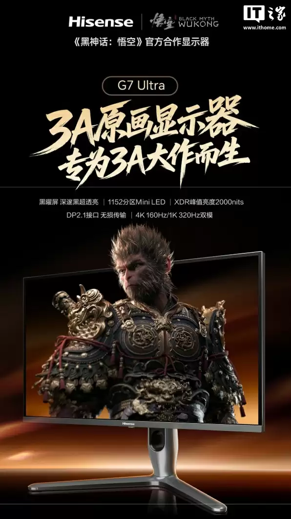 海信G7 Ultra显示器首发3299元:4K 160Hz双模+2000nits Mini LED