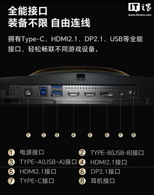 接口配置方面,G7 Ultra搭载最新的DisplayPort 2.1接口,支持无损传输4K@160Hz超高分辨率视频信号,完美适配即将发布的英伟达RTX 50系显卡。独特的双模式切换功能允许玩家根据游戏需求在4K 160Hz高清画质与1080P 320Hz电竞体验间自由选择。