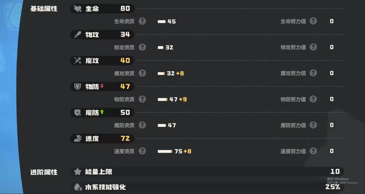 - 甩水(魔攻):造成30点魔法伤害并回复1点能量