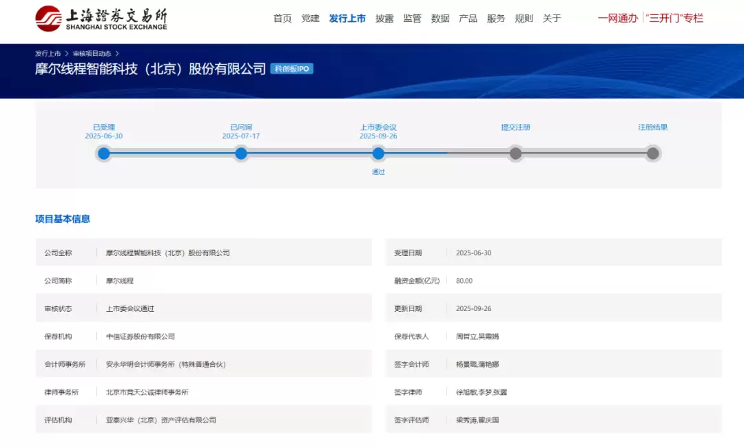 9月26日,国产GPU创业公司摩尔线程通过上交所审核,迈过冲刺科创板上市的关键一步,继续冲刺“国产GPU第一股”。