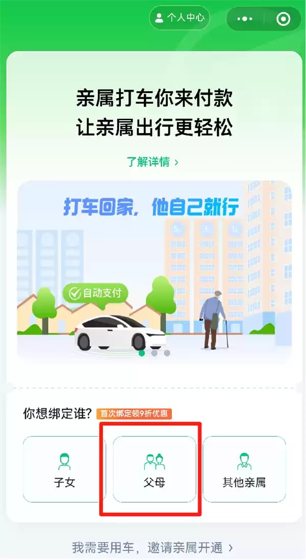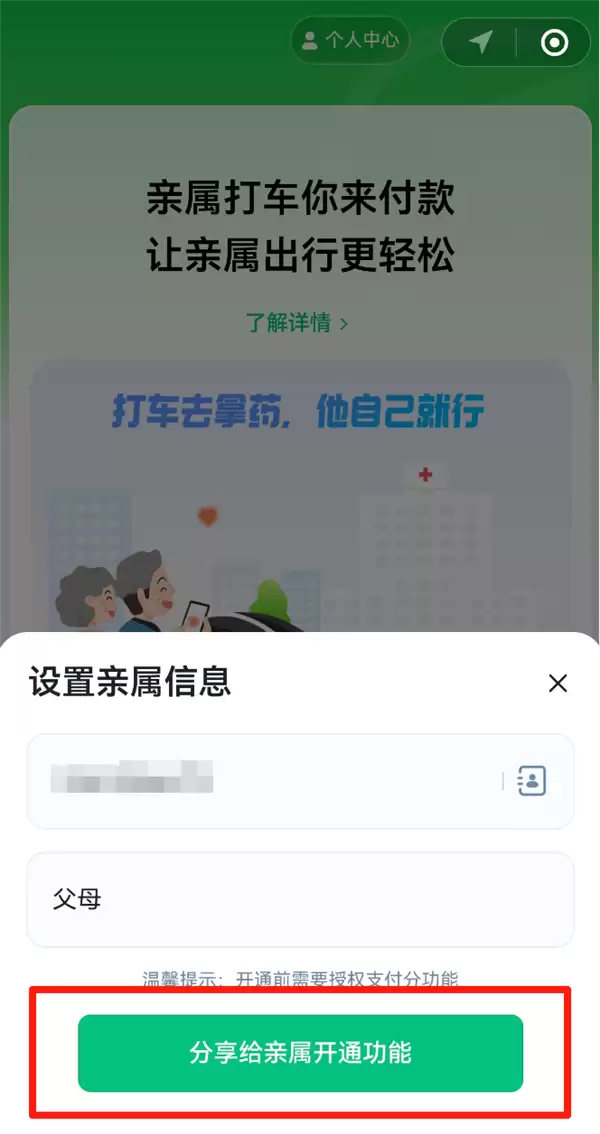 微信亲属打车功能上线:老人打车免密代付可分享行程