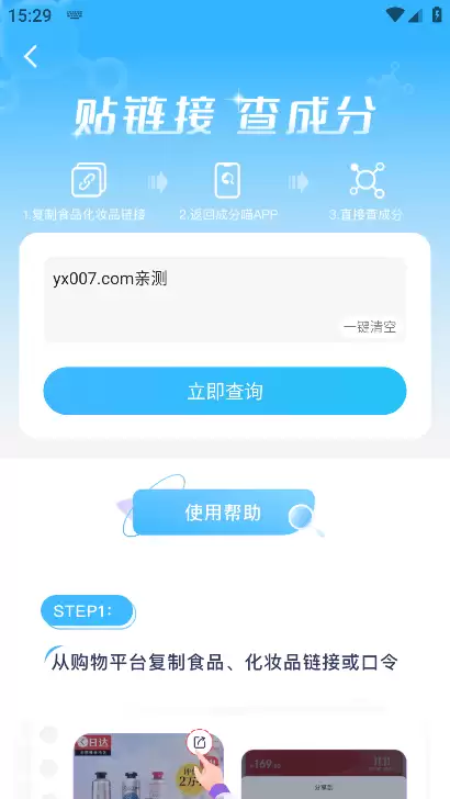 4、最便捷的方式是复制商品详情页链接,直接在App内粘贴即可快速获取成分信息