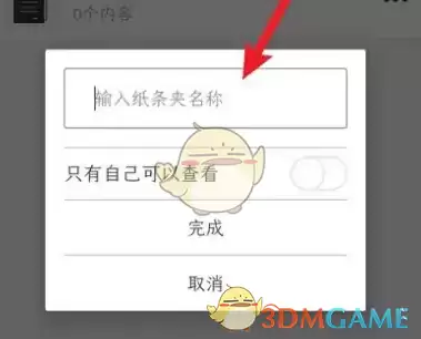 3、在弹出的创建界面输入新纸条夹名称,确认后即可完成设置