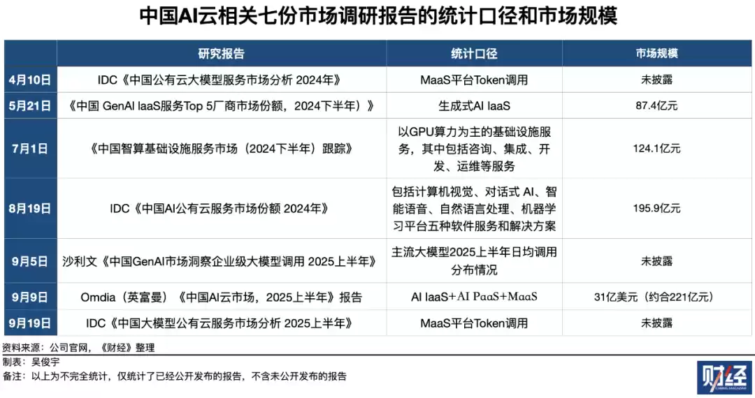 IDC、Omdia、沙利文,这三家机构2025年至少公布了七份有关AI云市场的调研报告。