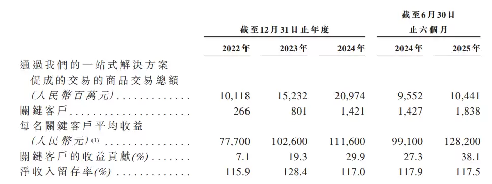 另一方面,客户结构优化也推动了小鹅通平台价值的提升。截至2025年6月30日,小鹅通拥有1838个关键客户(年贡献收入超10万元),其收入占比从2024年的7.1%大幅提升至2025年上半年的38.1%。单个关键客户的平均收入也从2024年的7.77万元增加至12.82万元,显示出客户质量的持续提升。
