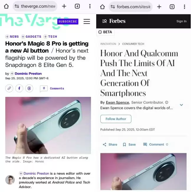国际权威媒体《The Verge》《Forbes》等纷纷指出,荣耀与高通的技术合作为端侧AI树立了新标杆,标志着中国科技企业正从技术采用者转型为规则制定者。