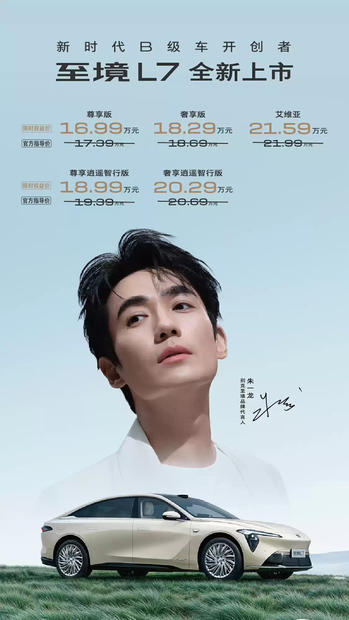 9 月 28 日消息,别克至境 L7 今晚正式宣布上市,号称“新时代 B 级车开创者”,限时权益价 16 99-21 59 万元,将于 10 月 20 日开启交付。此外,别克最新宣布至境首款新能源