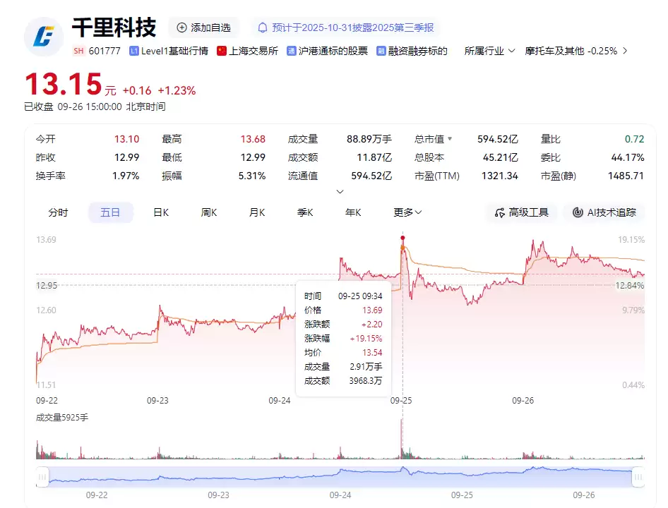 9月25日公告发布当天,印奇掌舵的千里科技,股价一度涨超19%,市值一度猛涨超99.5亿元。