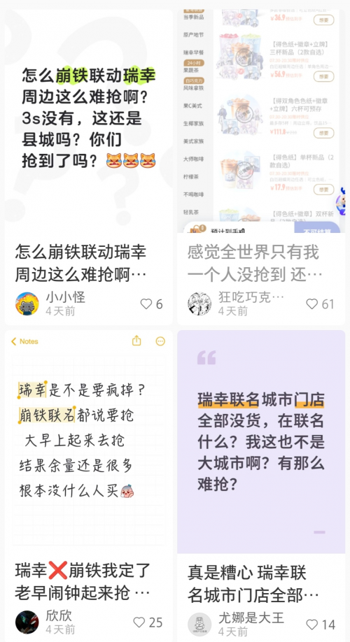 活动上线时那叫一个疯狂,瑞幸小程序里的联名套餐秒秒钟就被抢光。不过这可难不倒星铁玩家,你看社交平台上,大家已经开始快乐晒单了。