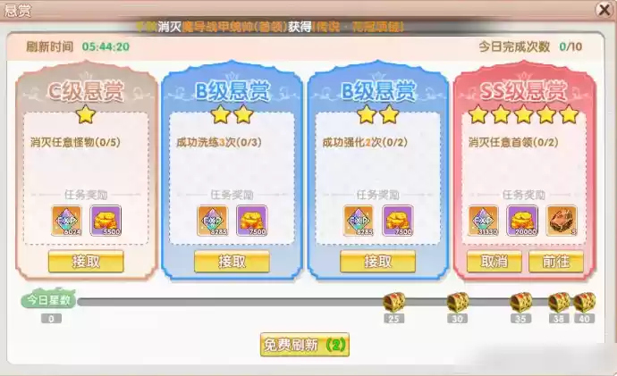 悬赏任务给的经验也非常丰厚,每天最多完成10次,想要快速升级的大佬们可以刷到s级再接取。