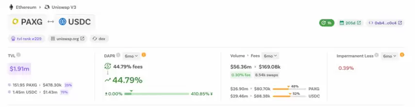 例如,Uniswap 上的 PAXG/USDC 池允许用户在代币化黄金与美元之间进行交易。该池的流动性提供者(LP)可通过赚取交易手续费获利。