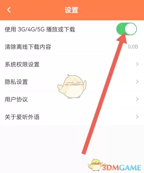 想要在爱听外语APP中使用移动数据播放或下载音频内容?只需几步简单设置就能搞定。启动APP后,轻触屏幕右下角的【我的】入口进入个人中心,点击【设置】菜单后找到【使用3G/4G/5G播放或下载】选项并将其开启,这样就能随时随地用流量享受外语学习资源了。