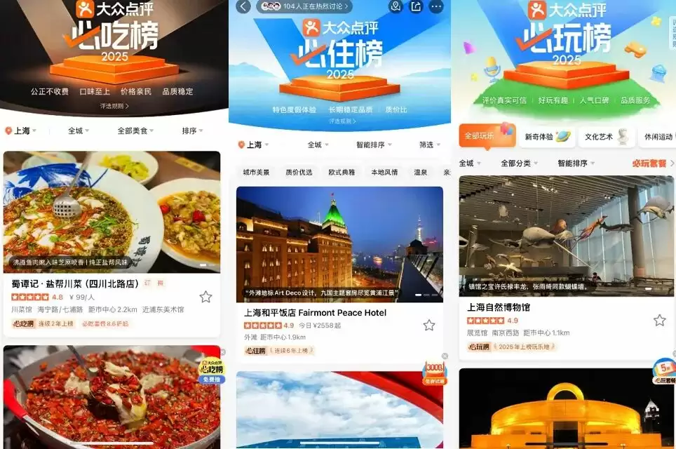 大众点评的核心竞争力来自其深耕22年的评价生态。从早期用户自发点评,到形成"必吃榜"等专业榜单,平台构建了完整的消费决策闭环。