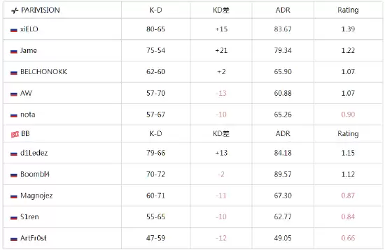 以下是BO5总决赛的详细数据: