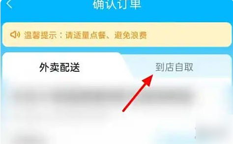 4、在订单确认页面,找到右侧的【到店自取】选项并点击选择。