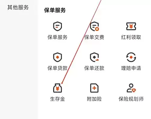 在扩展的服务列表中,选择对应保单的"生存金"功能项,点击即可完成生存金领取操作。