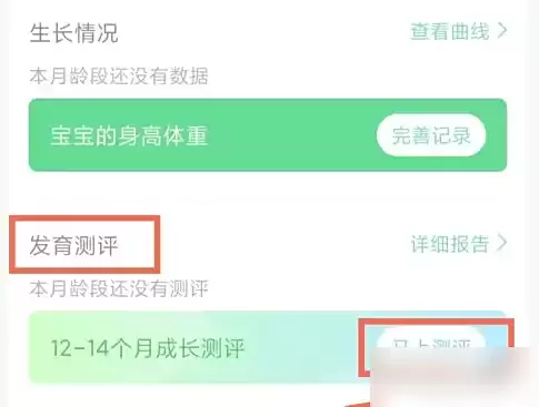 浏览至成长评估模块,选择"开始测评"按钮便可开启孩子的成长发育评测。