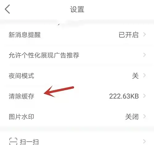 在设置菜单中,选择"清除缓存"选项进行清理操作