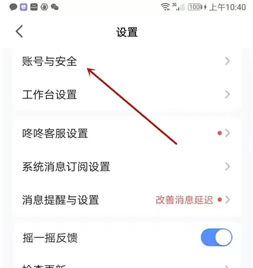 在设置菜单里,选择标有箭头的"账号与安全"选项