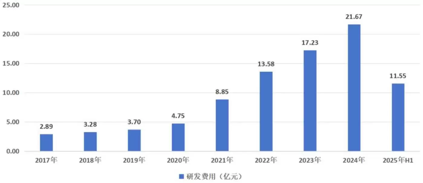 为支撑这一战略转向,长春高新持续加大研发投入。2024年,公司研发支出达26.90亿元,同比增长11.20%,研发投入占比提升至19.97%;2025年上半年,该比率进一步突破20%大关,投入力度可见一斑。