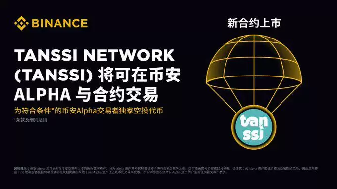 币安将为符合条件的用户提供专属代币空投。符合条件的用户需在 2025 年 7 月 9 日至 2025 年 7 月 10 日期间,持有至少 140 个币安 Alpha 积分在币安 Alpha 活动页面申领 750 个 TANSSI 代币空投。