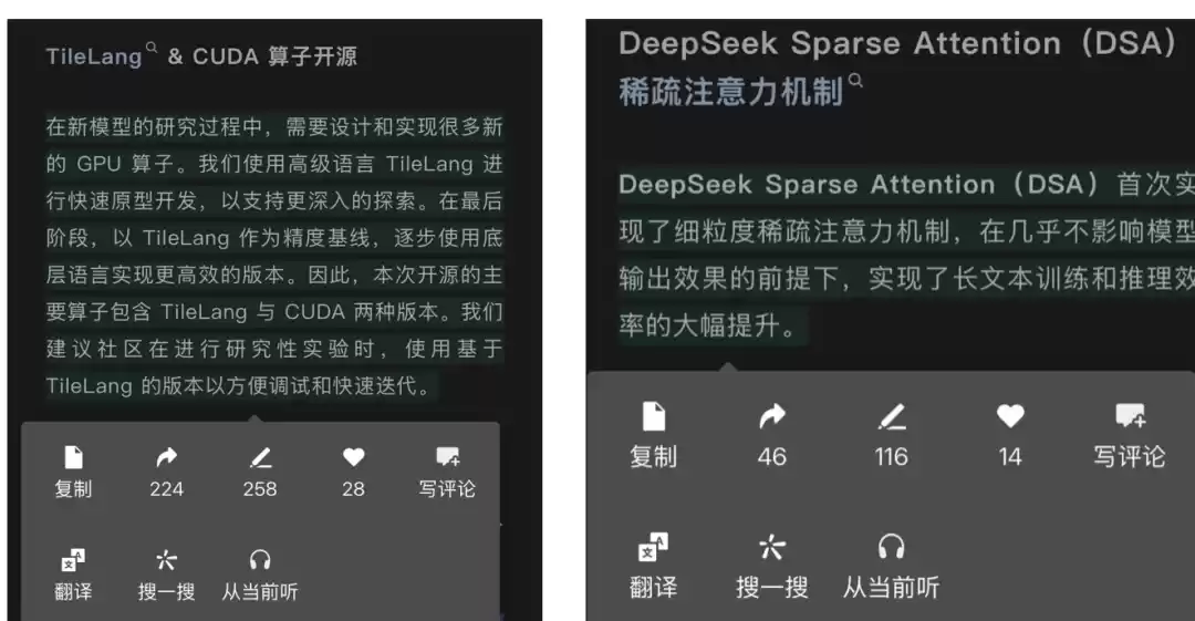 开源TileLang版本算子,其受关注程度甚至超过新稀疏注意力机制DSA,从画线转发的数量就可以看出来。