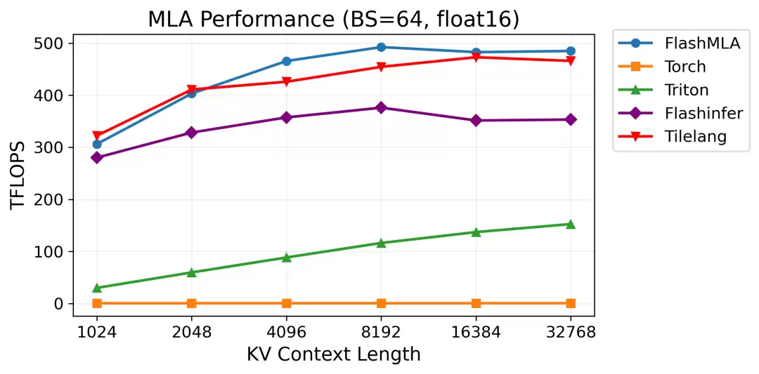后来TileLang也以DeepSeek在这天发布的FlashMLA内核作为评测基准,在H100上的MLA解码速度,TileLang编写的内核做到与FlashMLA相当。