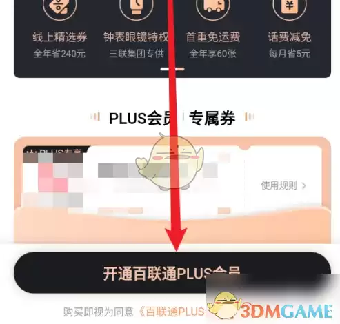 3、最后在百联通PLUS会员页面,确认信息无误后点击底部"开通"按钮完成支付