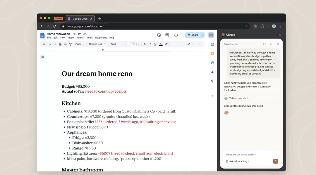 现在这些升级过的能力已经整合进Claude 的 Chrome 插件,根据最新演示,可以看到这个大模型能够直接在浏览器里操作:打开 、填写表格、完成任务等等。