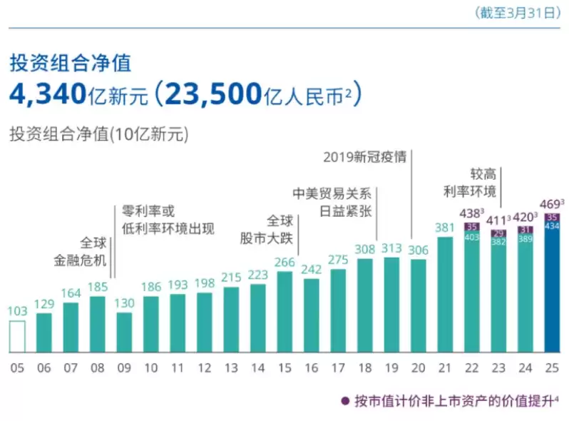 淡马锡在全球13个办事处管理共计3500亿美元资产。据淡马锡于7月披露的2025财年报告,截至今年3月31日,淡马锡投资组合净值达4340亿新元,创历史新高。