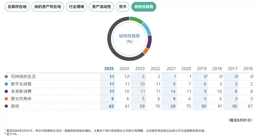过去十年,淡马锡以城市化、中产崛起、知识产权优势、走向全球的本土冠军等四大主题驱动了全球范围内的投资。“现阶段我们投资的是四大趋势:数字化进程、未来新消费、长寿、可持续生活。”