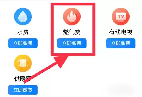 3. 选择"燃气费"服务,点击立即缴费按钮。输入燃气户号等必要信息后即可完成缴费(如箭头所示)