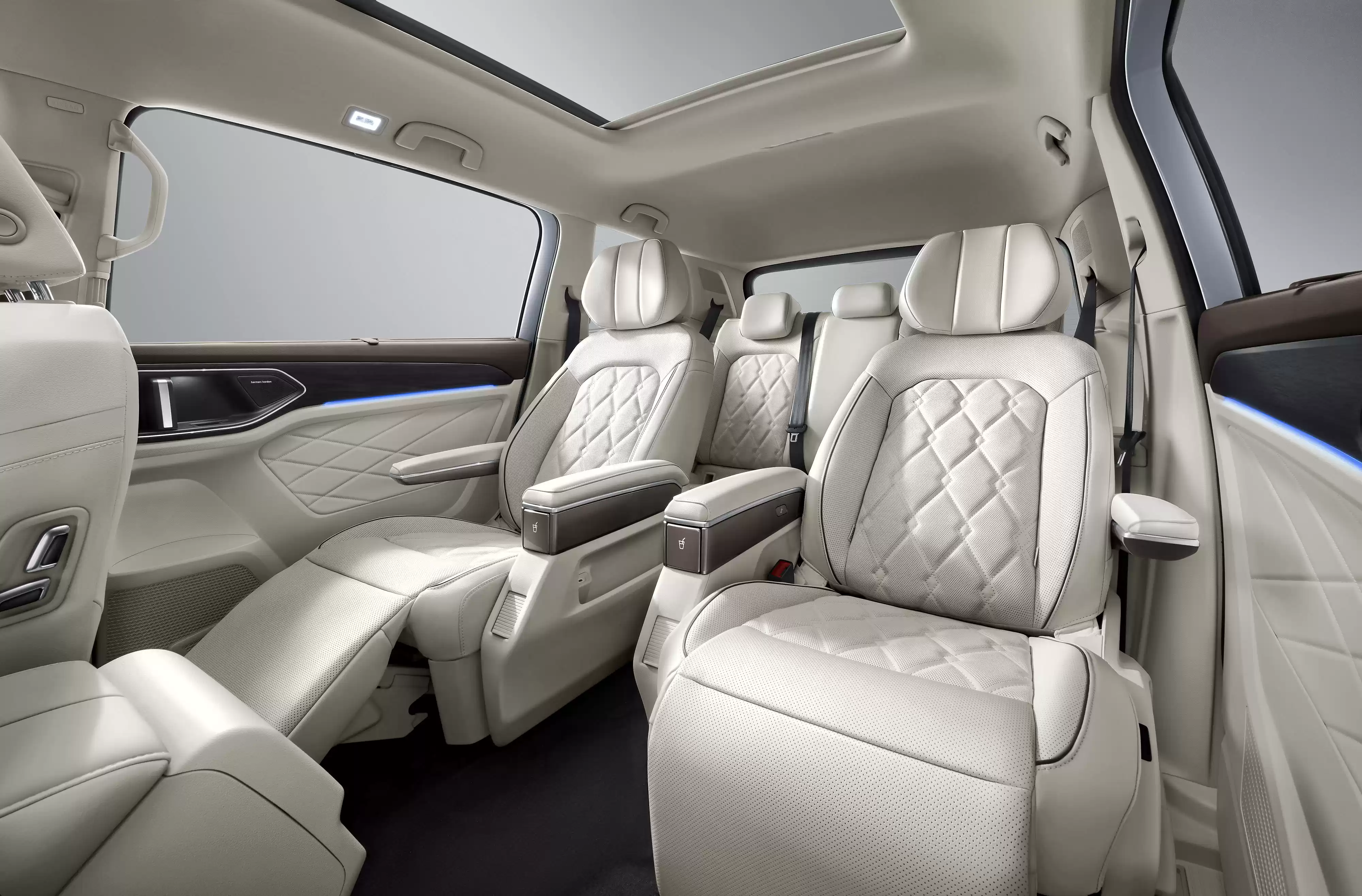 内饰方面采用双色主题设计可选,米色温馨雅致,棕色沉稳大气,配合深彤色木纹饰板尽显豪华质感。座椅材质从基础的高级织物到顶配的菱格纹超纤皮应有尽有,满足不同用户的触感需求。科技配置上标配10.3英寸全液晶仪表,中控屏则提供10英寸和12英寸两种选择。旗舰车型更配备了前排座椅通风、IQ.360全景影像及带7.1声道环绕声的哈曼卡顿12扬声器音响系统。