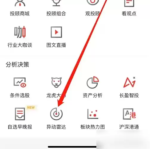 最后在弹出的菜单中选定"异动雷达"功能,即可开始查看相关数据